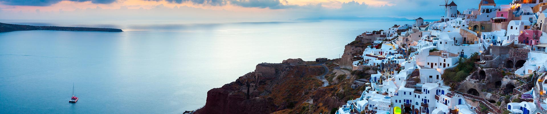 Located 200 km south of Greece’s mainland, Santorini, officially Thira, was formed as a result of volcanic eruptions. With several historic sites and beaches, Santorini is one of the most popular tourist destinations in the Mediterranean. Due to its geographic location the island experiences dry air and hot winds with cool weather in the evenings. Major attractions to see on the island include the Santorini Archaeological Museum, Wine Museum Koutsoyannopoulos, Megaro Gyzi Museum, Cultural Village, and the Museum of Prehistoric Thera. In addition, Red Beach, Santorini Volcano, Oia Village, Monastery of Profitis Ilias, and the Akrotiri Archaeological Site are the most visited touristic places in Santorini.